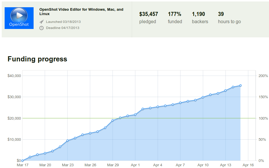last chance to spread the word, email our friends and co-workers, talk to our bosses about corporate sponsorships, or increase our pledges. Stretch Goal #5 is now more possible than ever before, but we will have to all pitch in to make this happen. Once again, THANK YOU for supporting OpenShot, and let's